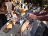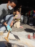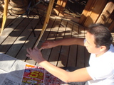 今ヤクに塗ってあるニスをサンドペーパーではがし、その後ヤク全体をキレイにもう一度ニス塗りします。